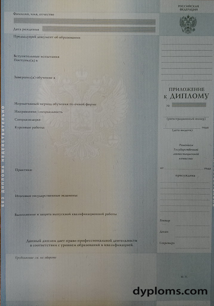 Наши специалисты обладают точнейший информацией об учебных дисциплинах и руководящем составе разных вузов в разные годы, а следовательно, Ваши вкладыши к дипломам будут заполнены корректно и соответственно времени.Цены, которые мы предлагаем своим клиентам, одни из самых доступных в интернет-пространстве. К тому же мы не требуем предоплат.Гарантируем анонимность и удалим все Ваши данные из наших баз во избежание утечки информации.